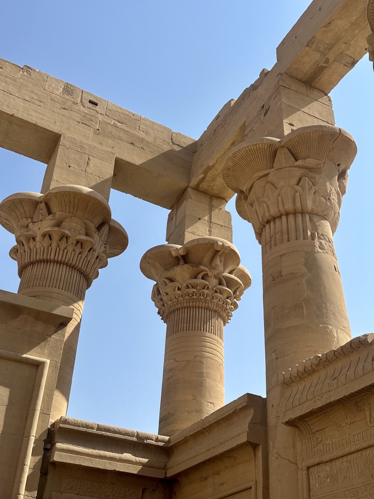 Although the temple to Isis is the largest structure in the complex, it shares the space with two other notable buildings, a temple to Hathor and the unfinished but still majestic Kiosk of Trajan, begun under Emperor Augustus. (Not sure if he intended to sell newpapers and coffee or fix iota-Phones. And yes, I know he was Roman, not Greek, but the joke doesn’t work otherwise. Artistic license.)