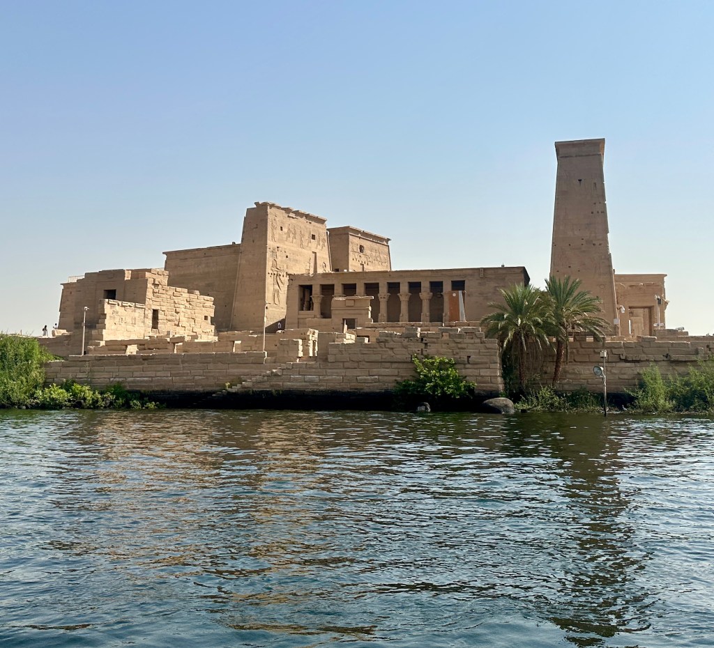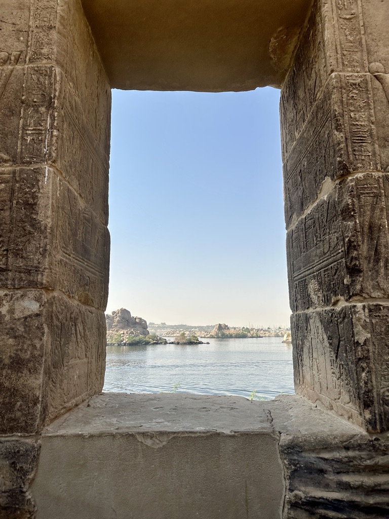 In addition to needing to relocate so many people, preservationists realized that the creation of Lake Nasser would submerge several important archeological sites, including the temples at Abu Simbel and Philae. Those sites, and several others, were removed block by block and reconstructed out of harm’s way. We’ll visit Abu Simbel tomorrow; today we headed from the High Dam to the Philae temple complex, which now sits on the islet of Agilkia.