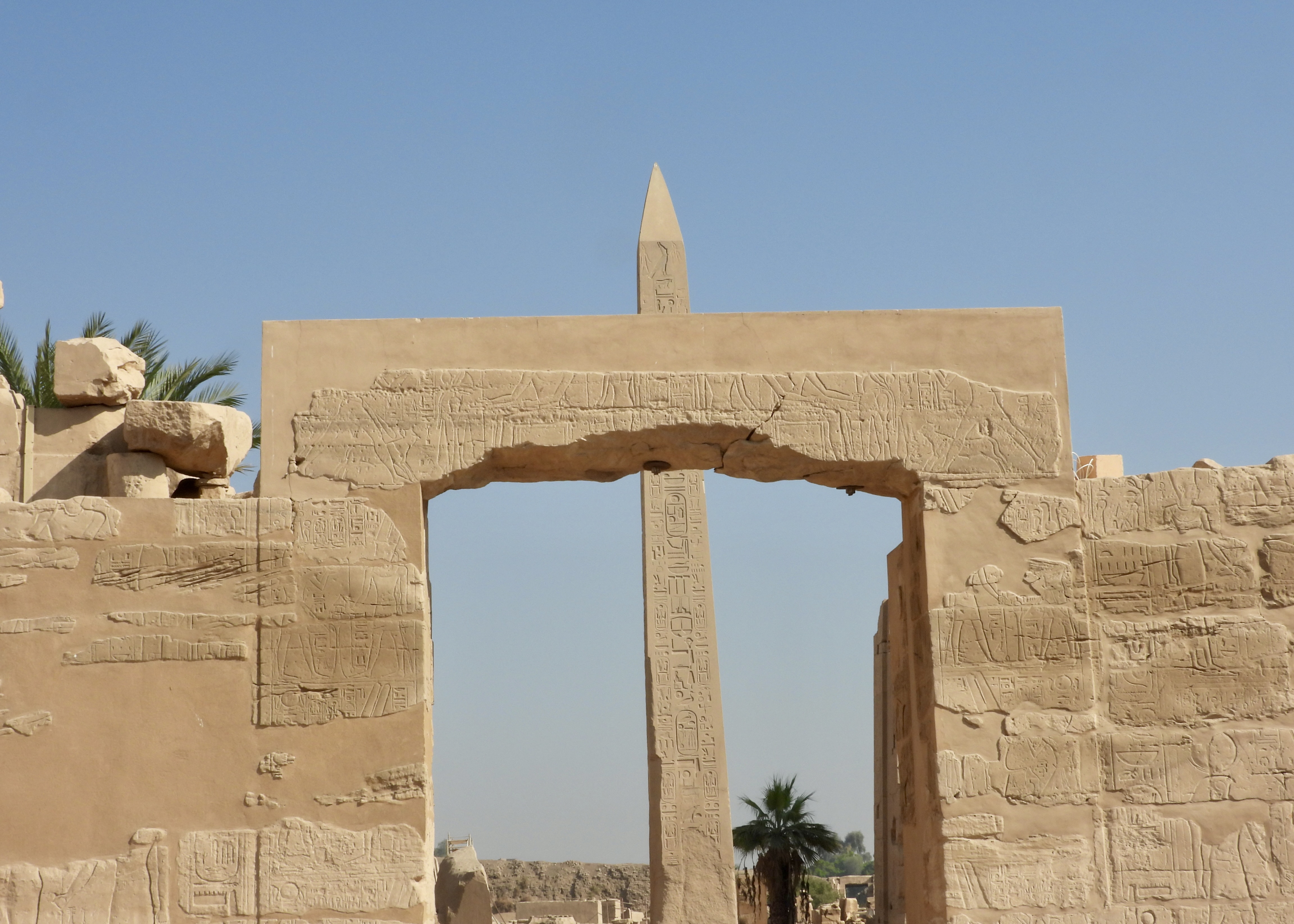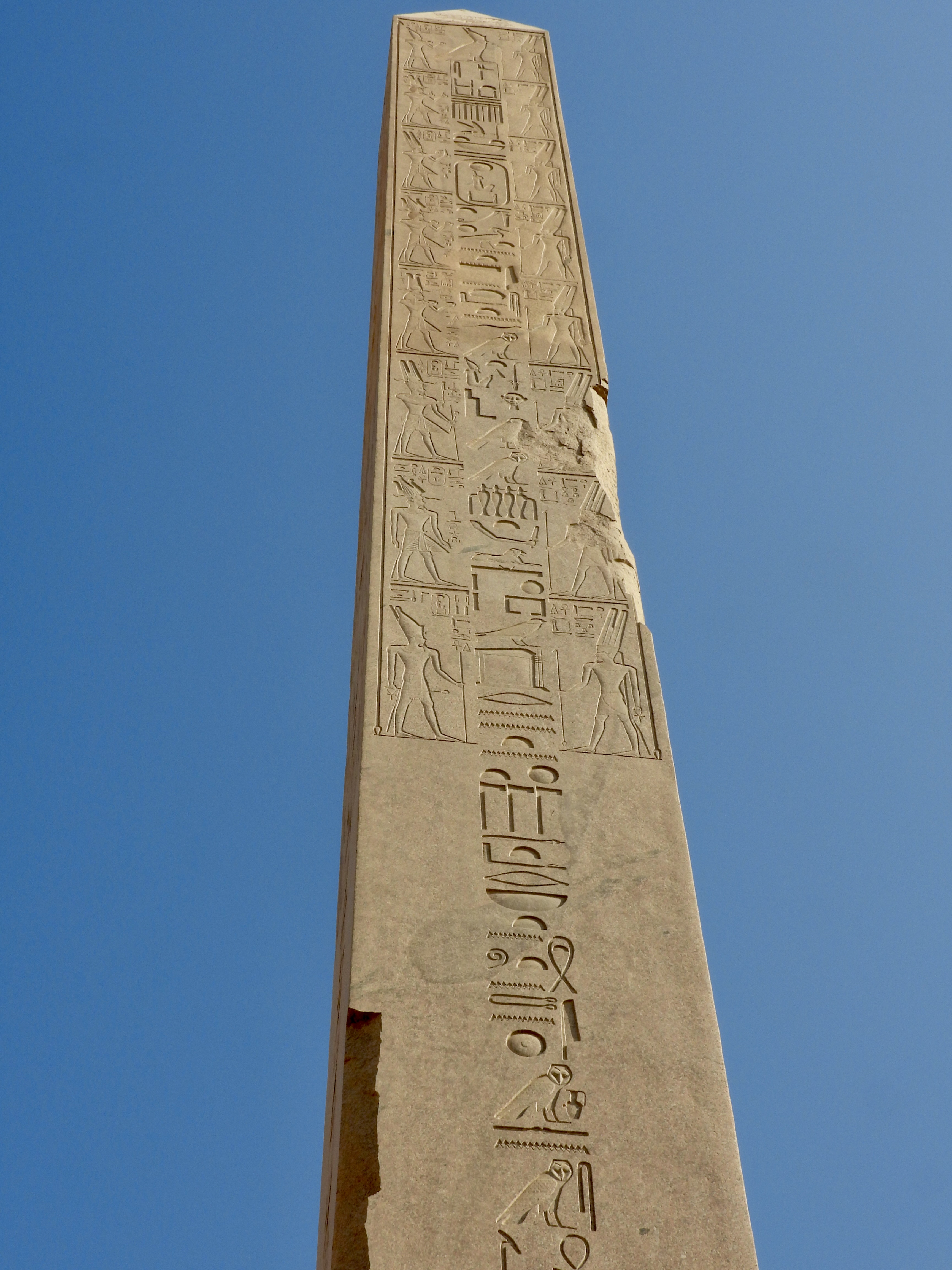 A bit farther on, there are two obelisks, the taller of which, dedicated to Hatshepsut, was the second-highest such structure in the ancient world.