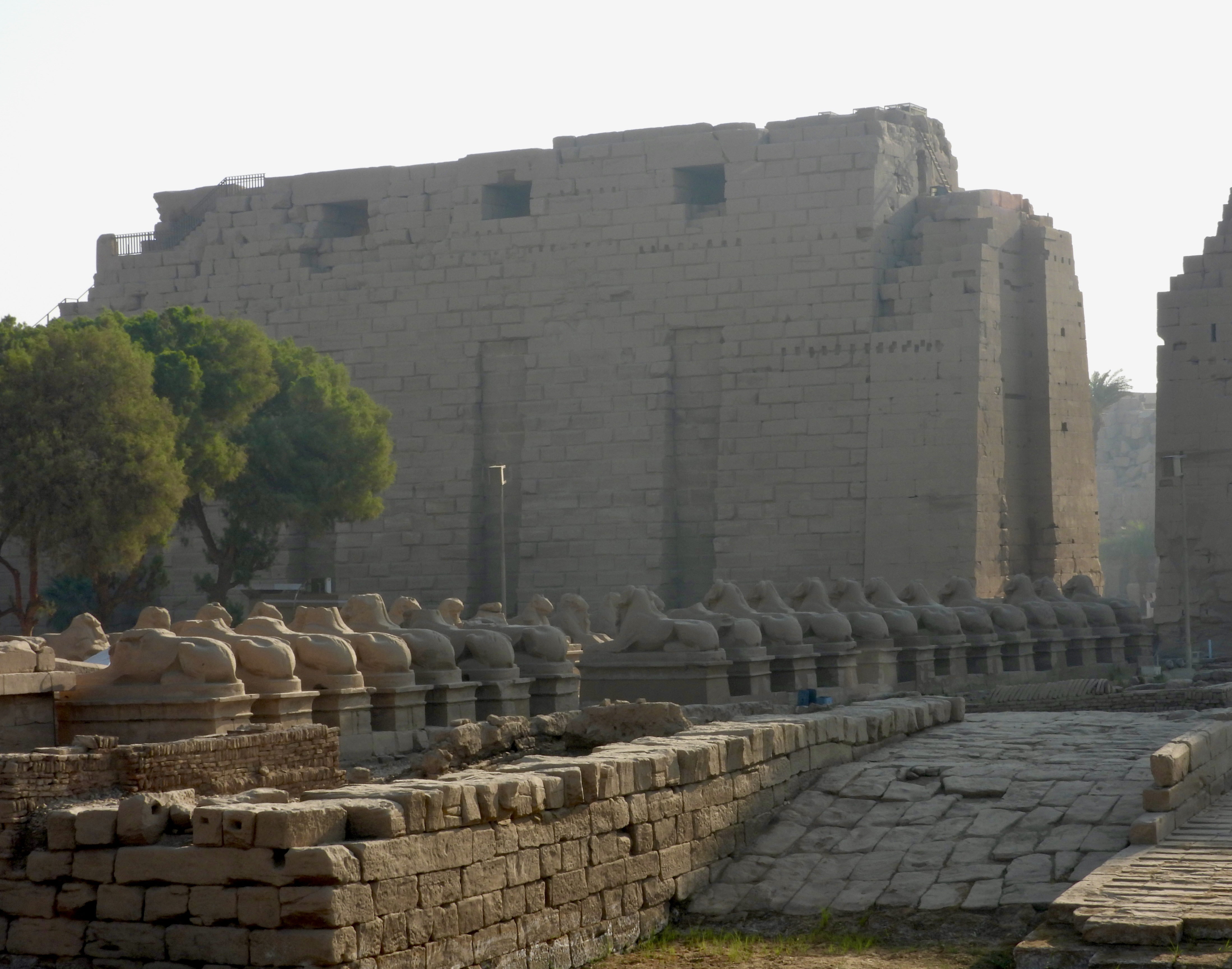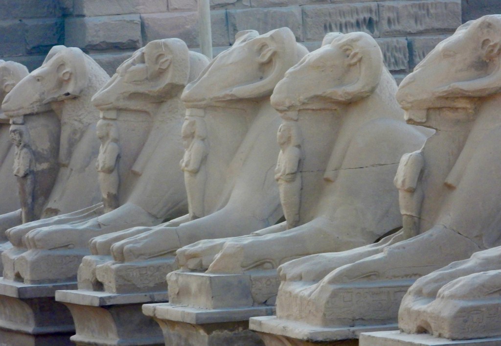 Parallel rows of rams-headed sphinxes lead to the entrance of the temple; each ram (representing the god Amun) has a small statue of Ramesses II at its front. (Ramesses II usually wasn’t one to settle for small statues, but I guess even his divine self was subordinate to Amun, requiring a statue of limitations.)