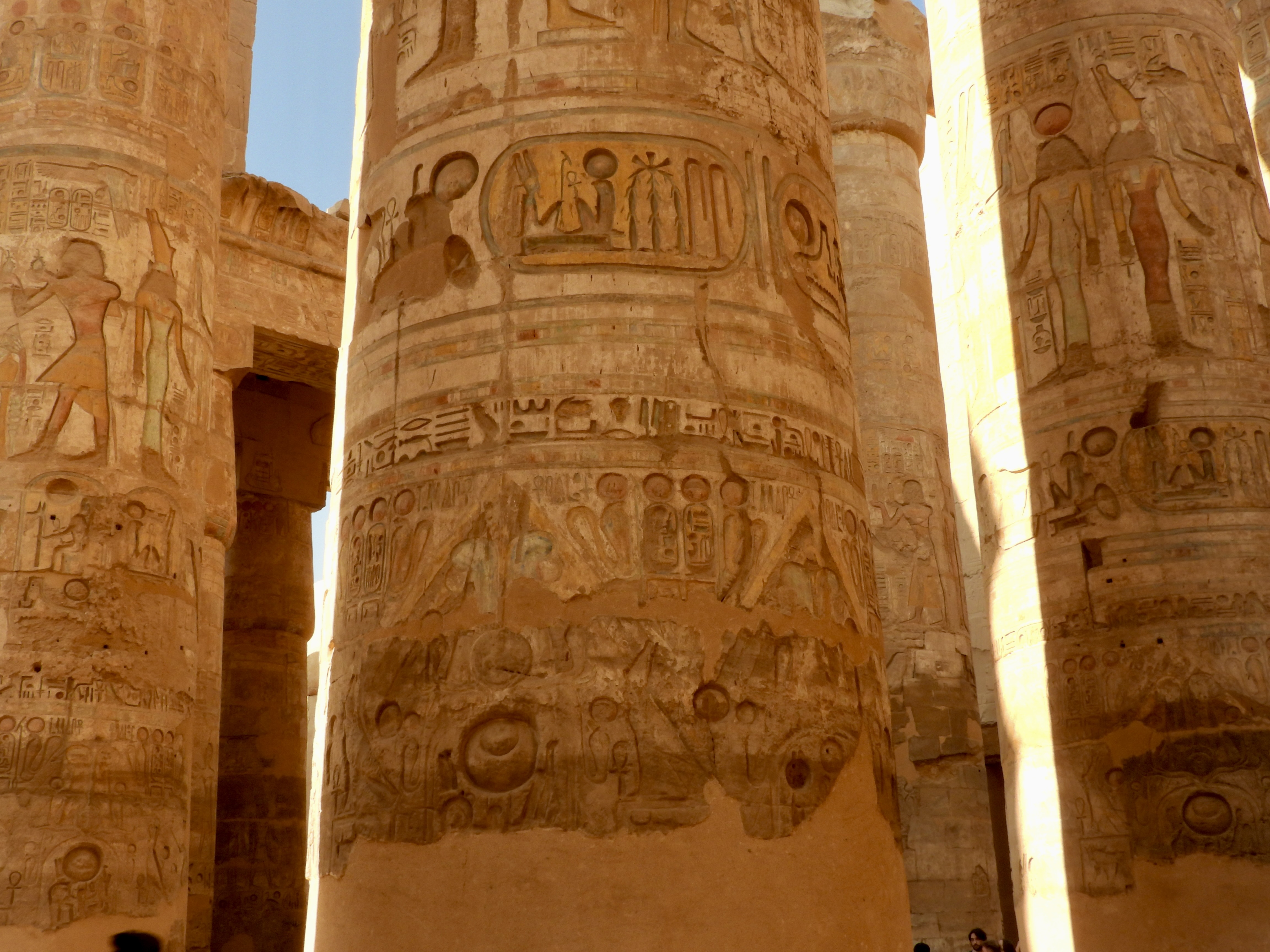 Shortly after entering the temple proper, you reach the Hall of Columns, a densely packed array of 134 ornately decorated pillars, many of which retain their original colors.