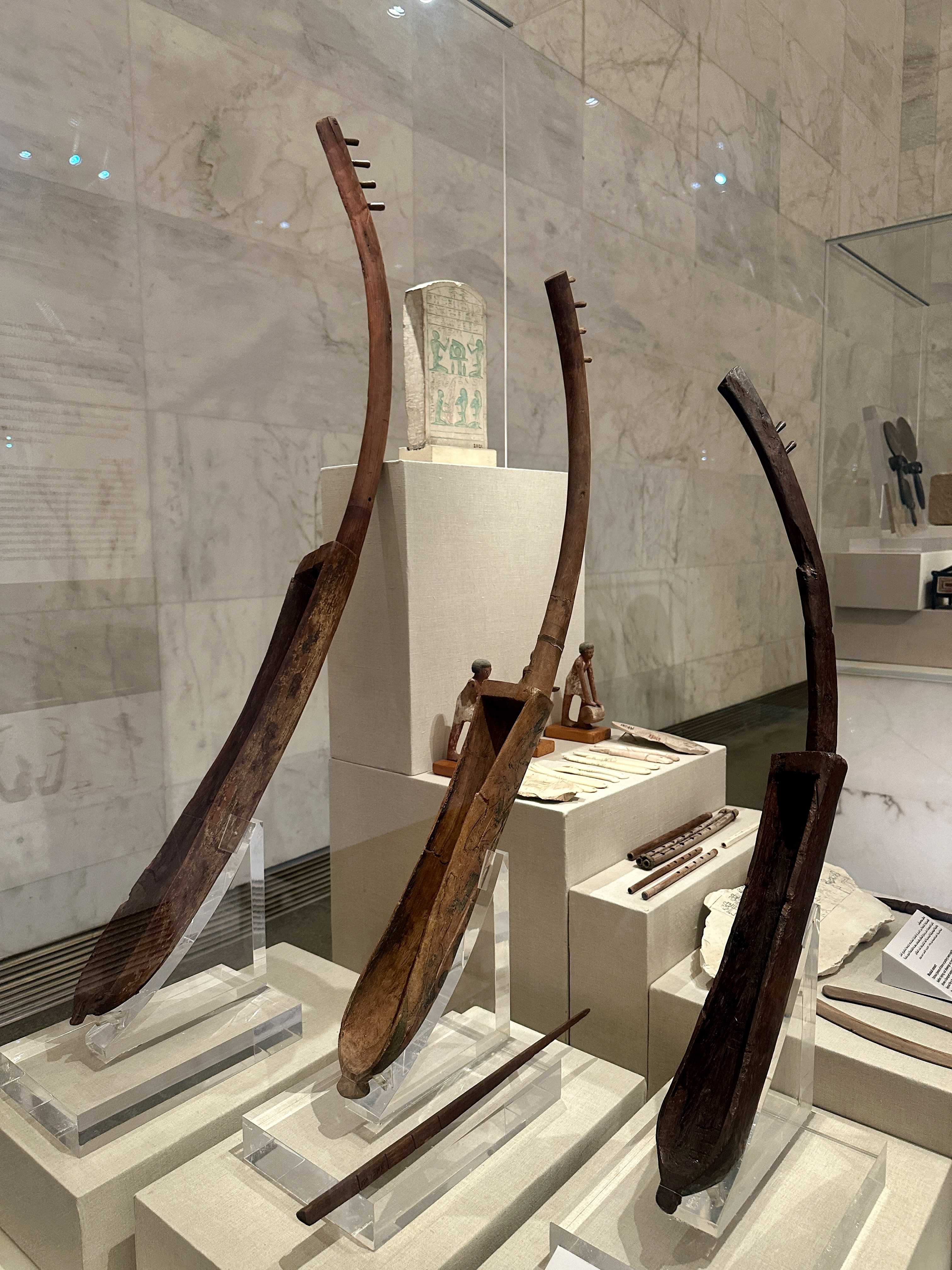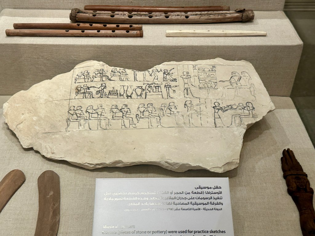 The main gallery of NMEC has a mix of chronological and thematic exhibits. In the former category, artifacts are arranged from paleolithic times to the present. The thematic exhibits look at discrete areas such as government, culture, writing, and material goods.
