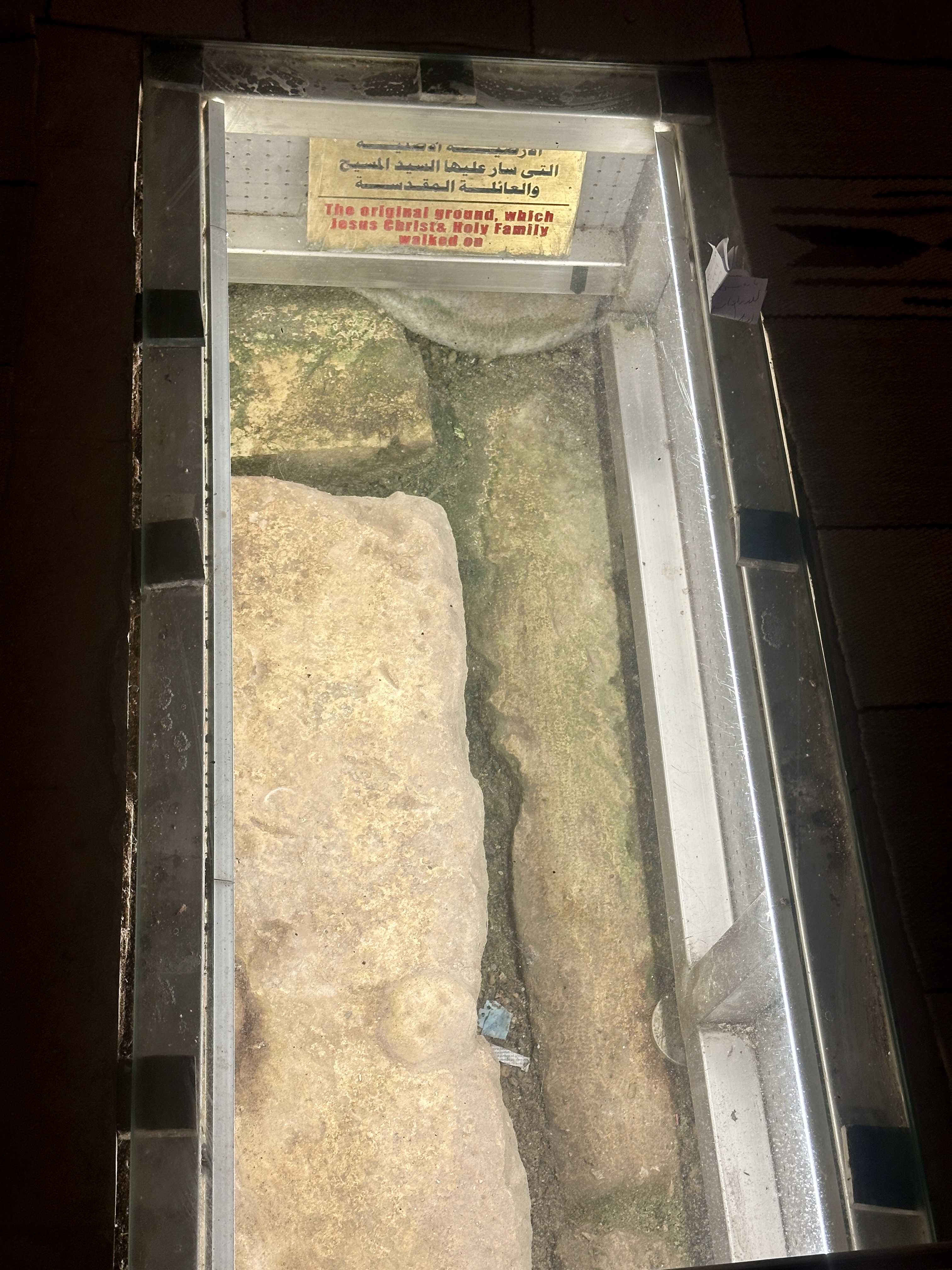 In particular, the Gospel of Matthew and various apocrypha assert that an angel appeared to Joseph and directed him to flee to Egypt with Mary and the baby Jesus because Herod wanted to kill the child. Supposedly, they hid in the grotto for a period of time before returning to the Holy Land. Visitors can walk through the grotto; there’s even a cut-out exposing the original floor where, if the story is true, Joseph, Mary, and Jesus trod.