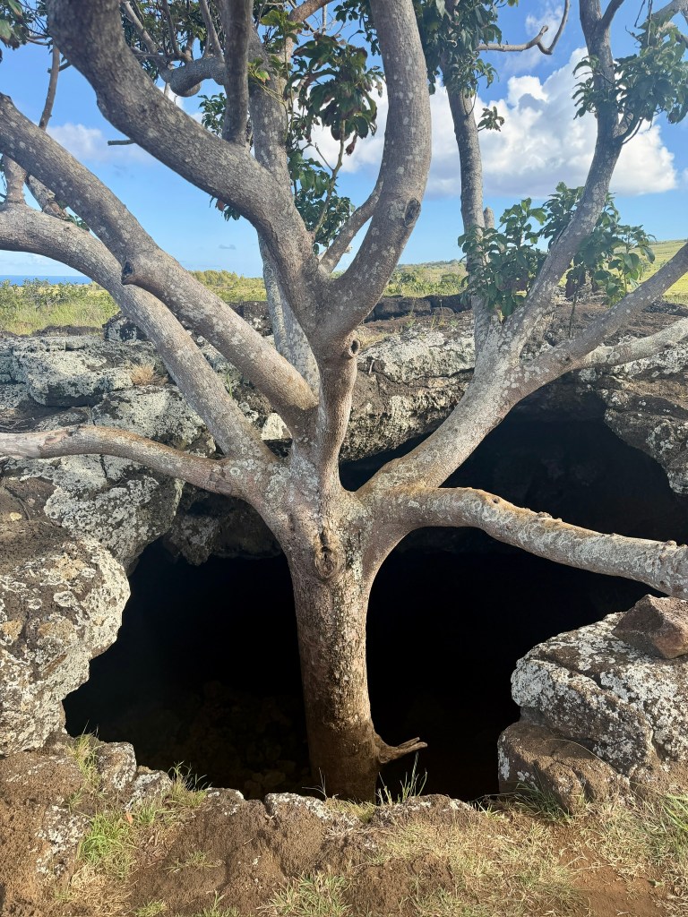 We booked a two-day tour through Tripadvisor with Green Island Tours. The first day’s itinerary began with a visit to Ana Te Pahu, where we crouched, shuffled, slid, and splashed our way through a lava tube which served as a hiding place during the frequent inter-tribal conflicts of centuries past.