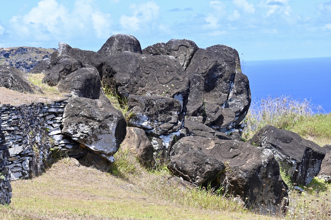 Our final stop on day 1, Orongo, was the most interesting of the day. It’s the site of an annual “Bird Man” competition. Developed after the devastating civil war, this competition sought to provide a peaceful means of conflict resolution; the winner would be king of the island for a year. (He also was given a young virgin, who of course had no say in the matter.)