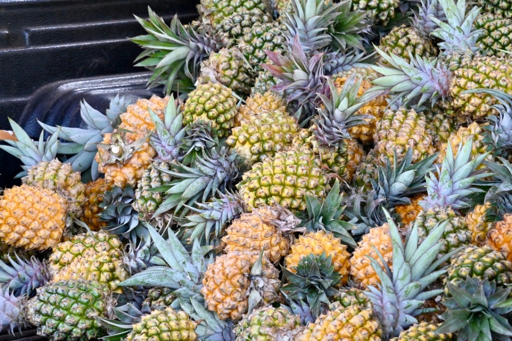 The plant life is even more riotous, with hibiscus, bougainvillea, and other showy blossoms splashing color wherever you look, bananas hanging upside down like sloths, and scrumptious small pineapples.