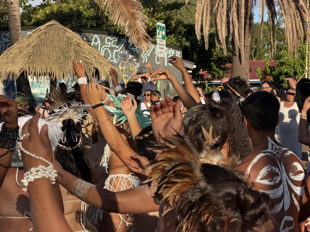 The highlight of the day was the parade marking the end of Tapati. Everyone, from small children to the wizened, dressed in traditional garb, and many of the men wore body paint. Although the outfits would be considered “indecent” in America, in Rapa Nui they are simply what people used to wear – though they certainly made for a “cheeky” performance.