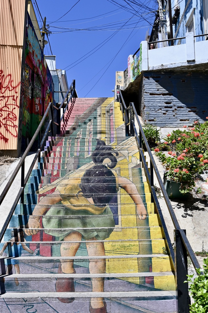 Gorgeous street art adorns virtually every vertical surface; even the steps display murals. Given the “picture is worth a thousand words” exchange rate, I’ll opt for efficiency and just post some of my favorites.