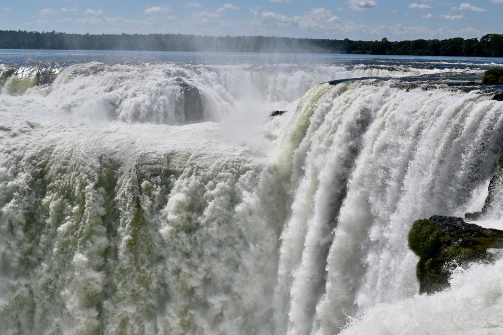 One hundred thousand gallons of water crash down Garganta del Diablo every second, looking in places as if the cataract sports Rasta braids. Vultures circle overhead while voyeurs below jostle and shove in search of the perfect place to strike a ridiculous pose in front of a sublime sight. (In case you can’t tell, I’m not a fan of selfie culture. You’ll find my selfie next to curmudgeon in the dictionary.)