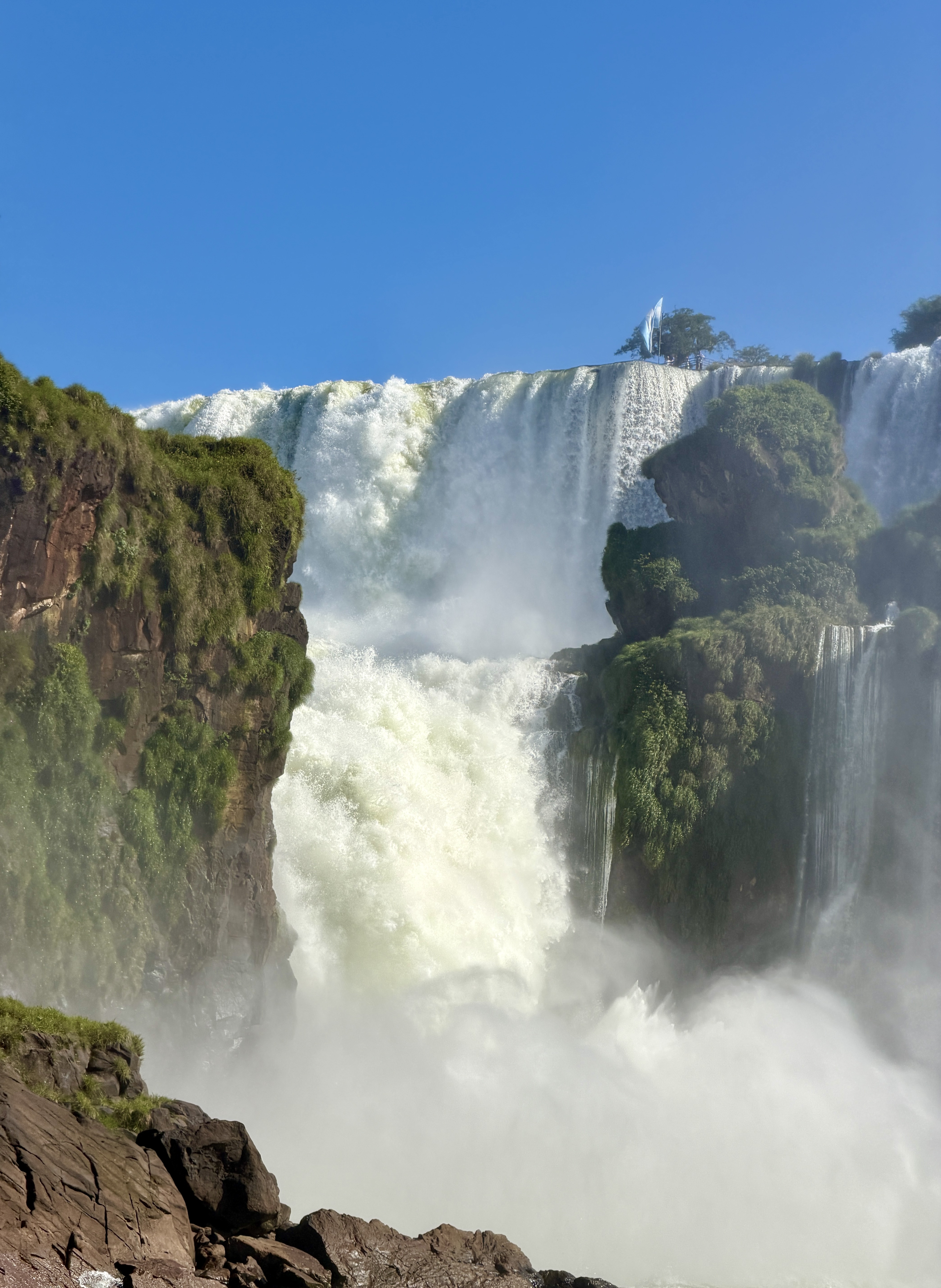 Our tour this morning took us down a mile-long, fully shaded, mostly flat path. The very first viewpoint is spectacular, and the scenery gets even more impressive as you proceed with the hike. The path ends just below Garganta del Diablo, with the mist and spray almost as dense as the selfie-taking tourists.