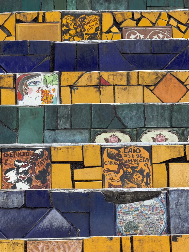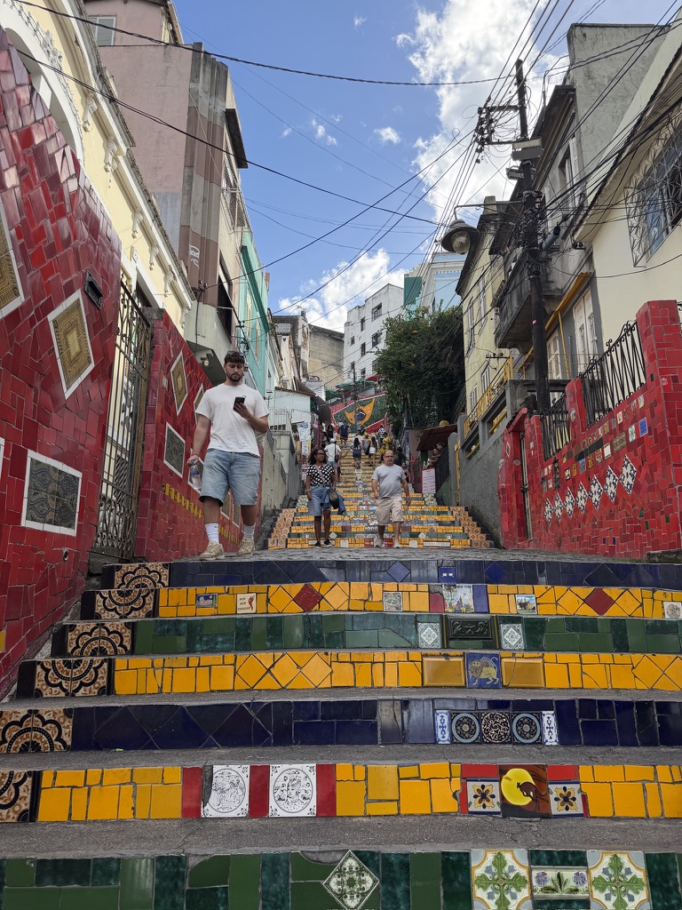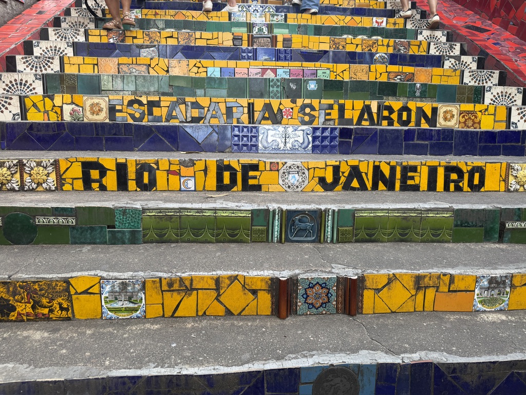 After returning to the hotel, Shari and I Ubered to the Escadaria Selarón, a series of colorfully tiled stairs leading up to Santa Teresa, a bohemian district atop one of Rio’s many hills.