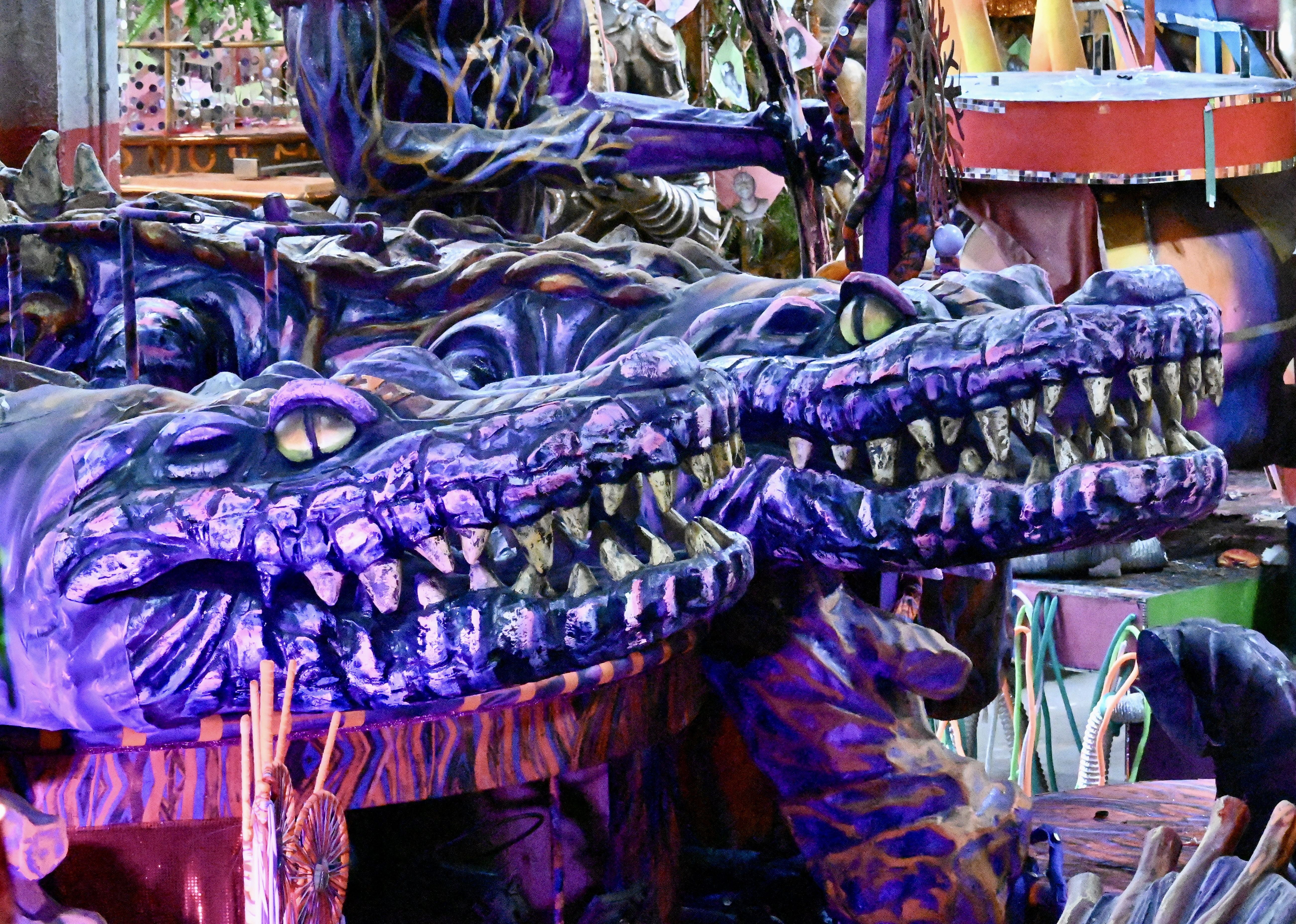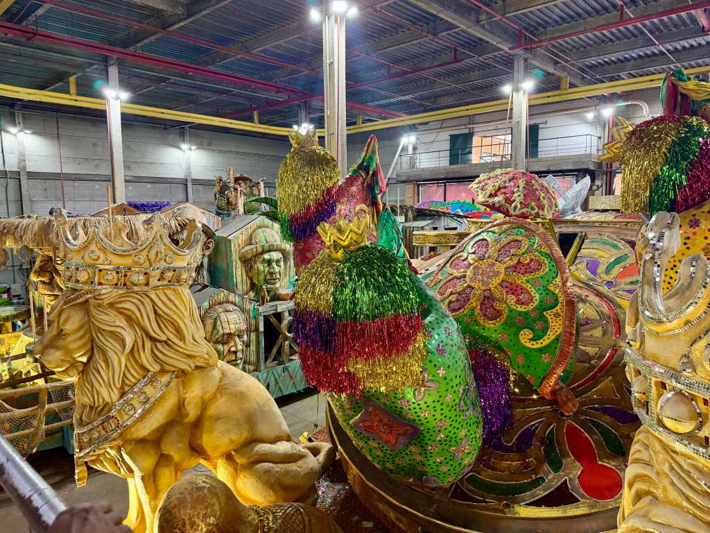 Located in a warehouse, the school consists of thousands of people who make floats and costumes, develop a performance consistent with that year’s theme, dance, sing, and play musical instruments for the annual Carnaval.