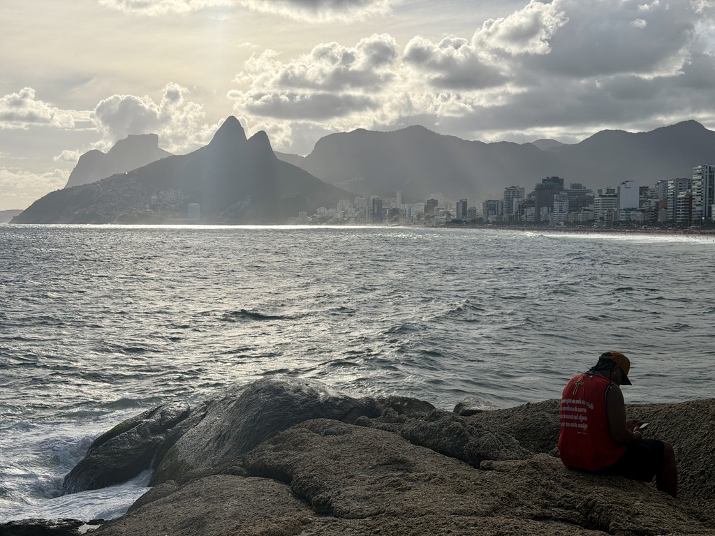 When I travel, I often get caught up in the sights and sounds of hitherto unfamiliar places. Saturday night, February 28, made me step back and consider just how fortunate I am: gaze at the sunset over Ipanema beach. Listen to a trio play bossa novas. Share a very good if not exactly healthy dinner with a friend I’ve known for more than six decades. Sip a refreshing local pilsner while listening to the surf break and watching dogs and kids frolic on Corcovado beach. Bliss and blessings!