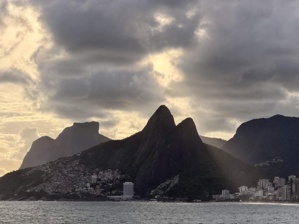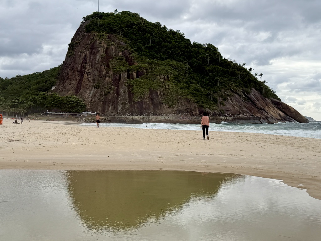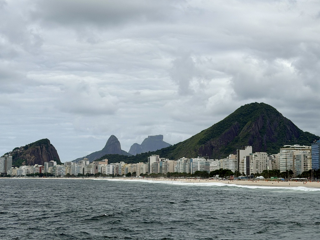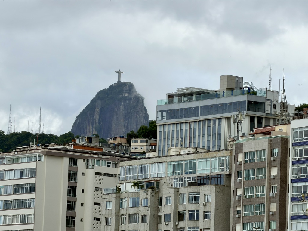 Looking back along the beach, there are wonderful views toward Ipanema, and we could see the Christ the Redeemer statue high up in the distance.
