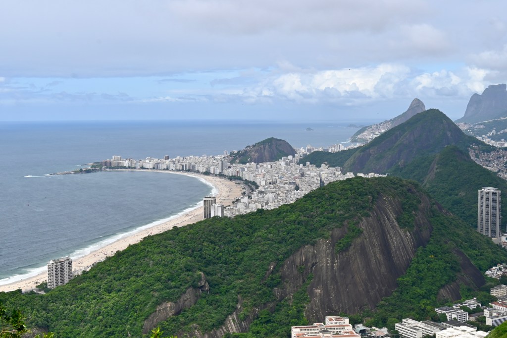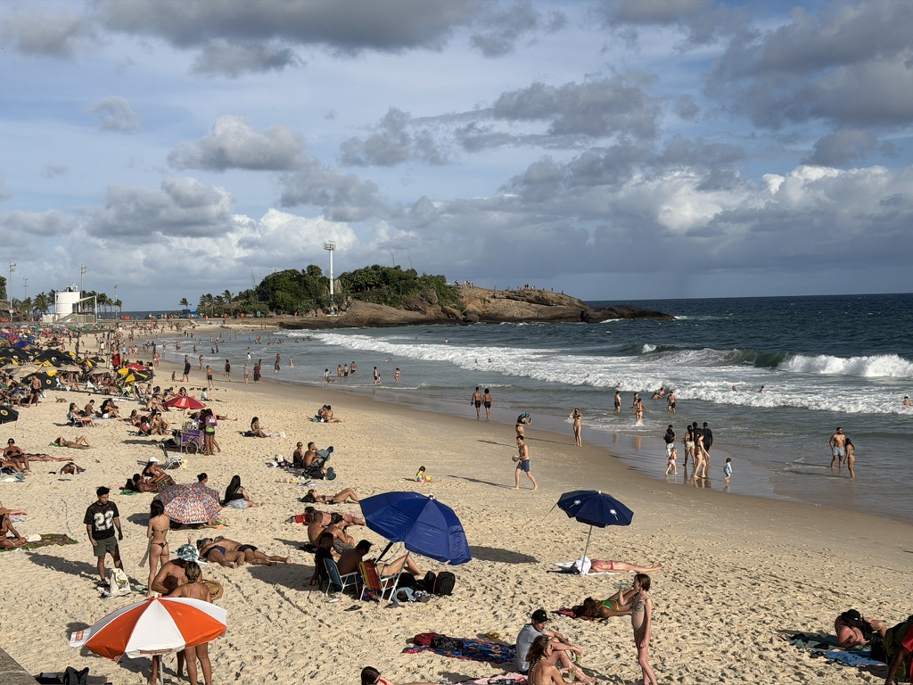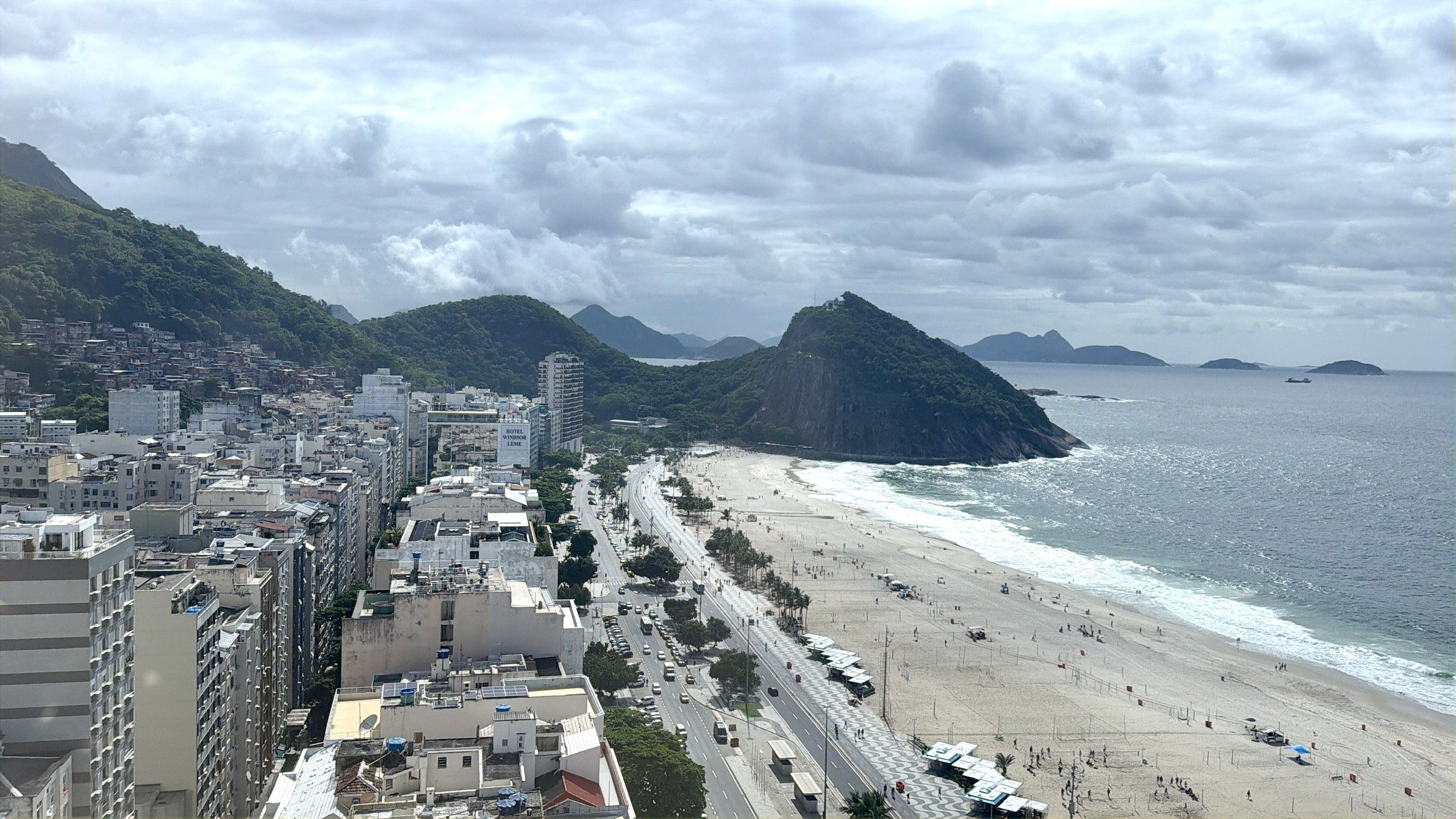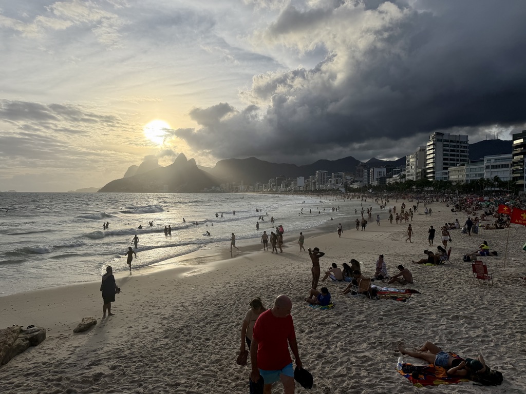 Looking back along the beach, there are wonderful views toward Ipanema, and we could see the Christ the Redeemer statue high up in the distance.