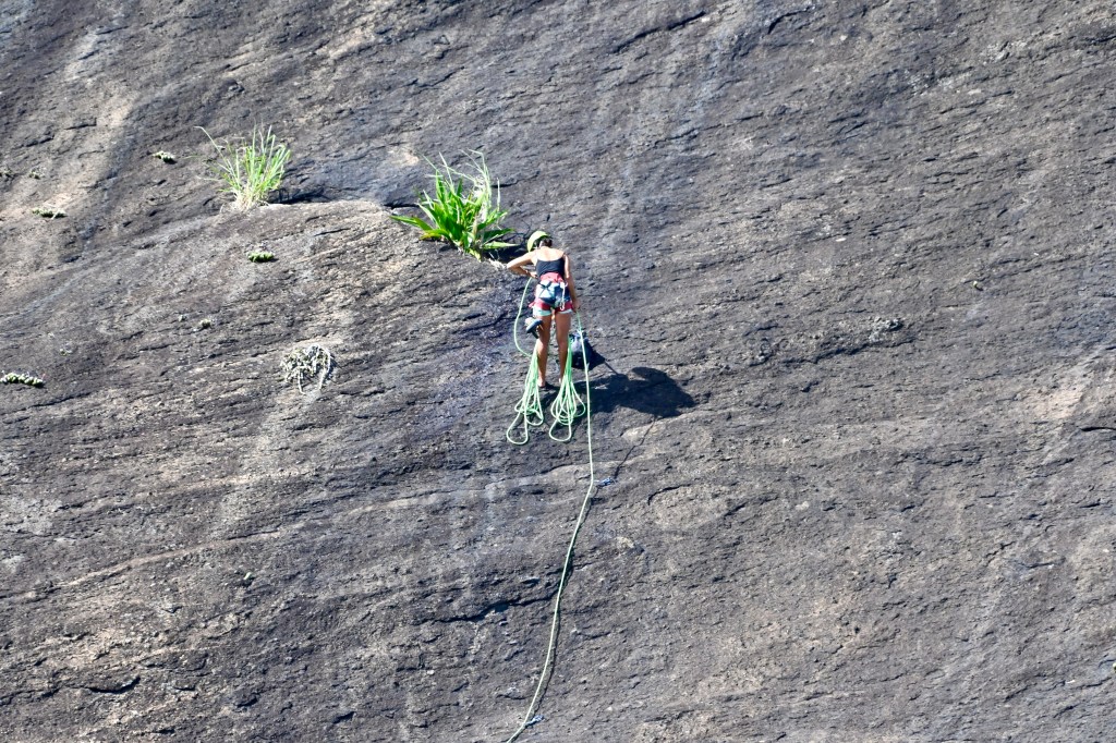 From Morro da Urca, you board a second cable car, which gains another 175 meters of elevation to the top of Sugarloaf, 1300 feet above sea level. The extra 500 feet or so of altitude afforded an even wider prospect, coupled with a much-appreciated refreshing breeze.