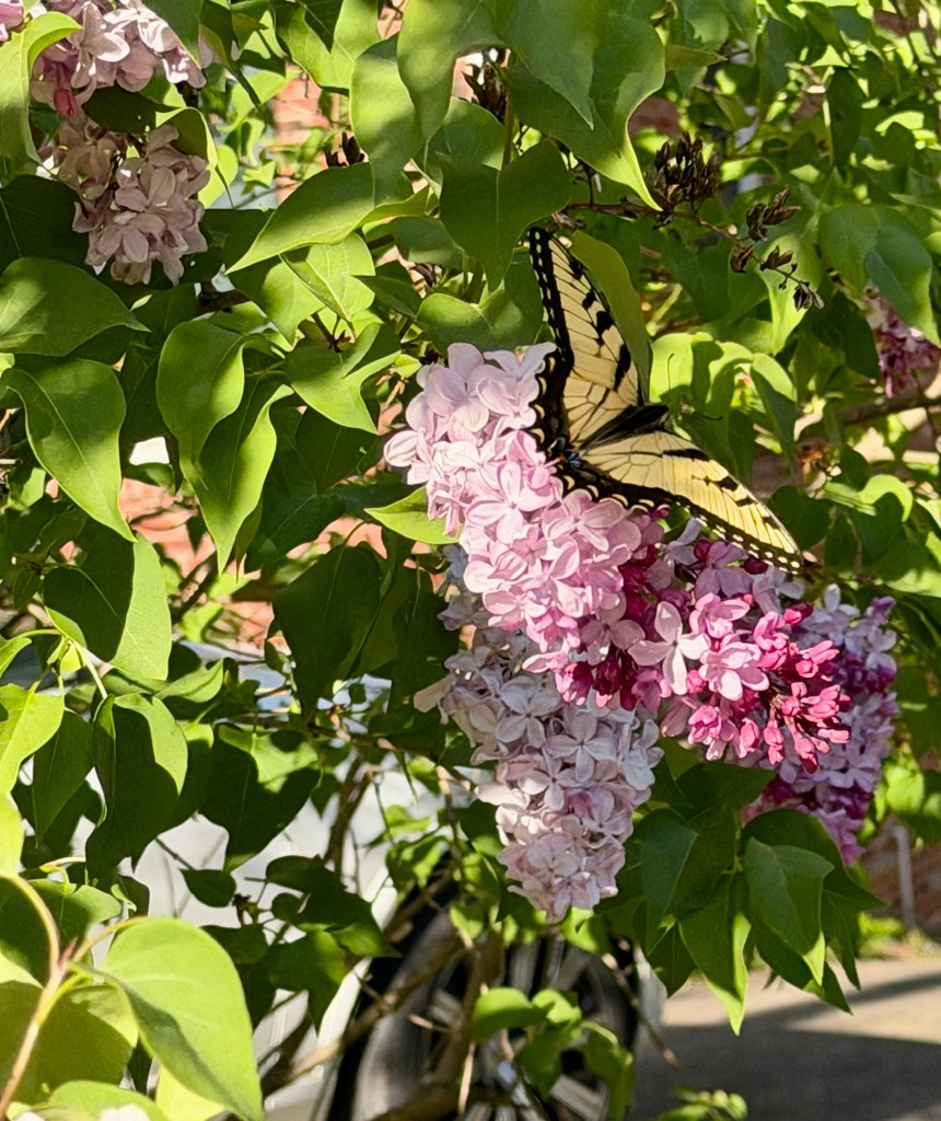 Most of all, there is bright color everywhere: yellow forsythia; yellow, orange, and white daffodils; lilac lilacs (duh); pink cherry blossoms; achingly green young leaves ….